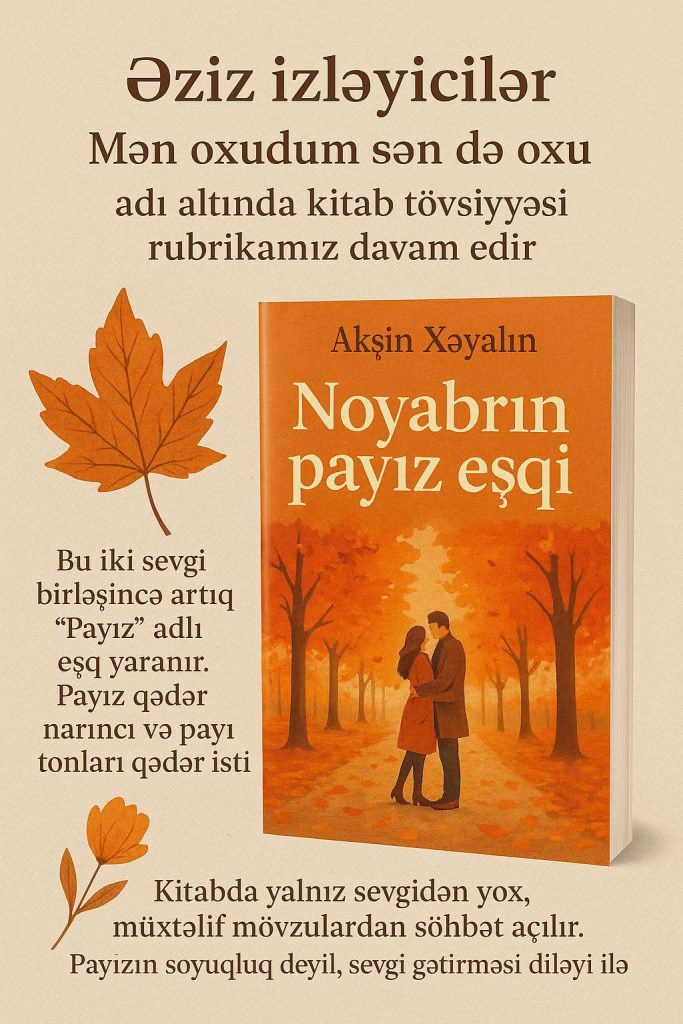 Növbəti tövsiyyəmiz Akşin Xəyalın “Noyabrın payız eşqi” adlı hekayələr kitabıdır.